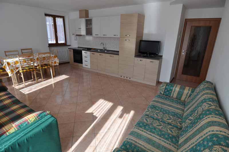 Apartment about 70 sqm with 4/6 beds located in Andalo building "Condo Grespi" second floor, in quiet and in the immediate vicinity of the sports center, comfortably furnished and it consists of two bedrooms, large living room with sofa bed and kitchenette, two bathrooms with shower, balcony, one parking space in a garage, basement, elevator.