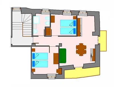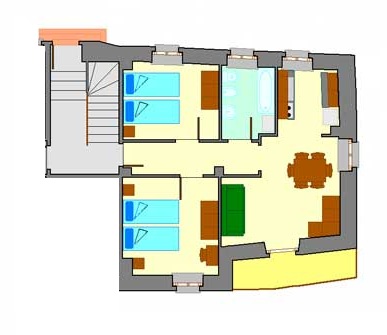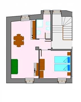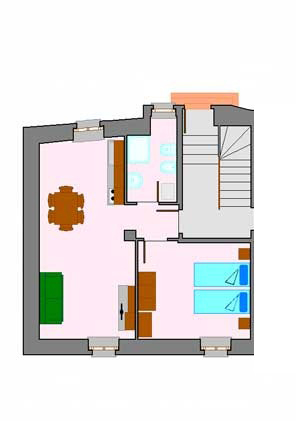 Apartment about 45 square meters (4/5 beds) located on the first floor consists of: a bedroom, large living room with sofa bed and kitchenette, bathroom with shower.